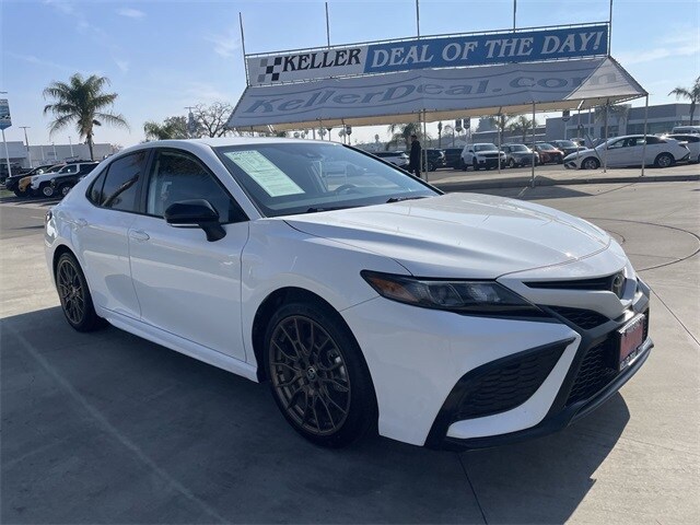Apple CarPlay/Android Auto, Auto-Dimming Rear-View Mirror, Bumpers: body-color, Convenience Package, Delay-off headlights, Fully automatic headlights, HomeLink, Leather steering wheel, Nightshade Edition, Smart Key System w/Push Button Start, Traction control, Turn signal indicator mirrors, Wheels: 19" x 8.5J Alloy. 28/39 City/Highway MPG Wind Chill Pearl 2.5L I4 DOHC 16V 2024 Toyota Camry 4D Sedan FWD SE Nightshade